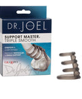 The Triple Smooth Cock Cage includes multiple pliable rings that provide stimulation to your scrotum while helping you enjoy powerful orgasms. The rings stretch around your shaft and scrotum. The erotic Enhancer stimulates your penis and testicles, leading to a sticky climax! The Enhancer will also help you maintain your erection for a longer period of time. Dr. Joel Kaplan endorses the Cock Cage due to the comfort that it provides. The Dr. Joel Kaplan Support Master Triple Smooth measures a compact 2.5” x 2.5” or 6.25 cm x 6.25 cm and made from soft and ultra-stretchy, unscented phthalate-free TPR. The support ring comprises of 3 flexible rings that comfortably stretch around penis shaft and a larger ring that wraps around the scrotum base.