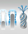 The luxurious, non-urethane AIR FLOW CUP's spiral-ribbed sleeve wraps you in encompassing pleasure. Now you can choose from the entwining sensations of DELICATE GENTLE or the firm gripping DYNAMIC STRONG Editions.